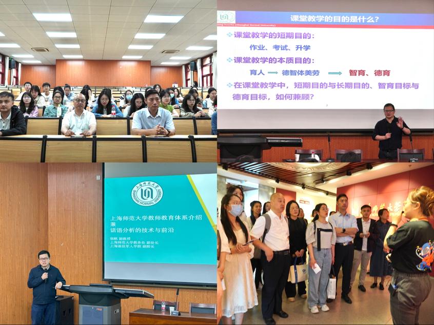 18日在上海师范大学,研学团参观了校史馆和校园。在讲解员的解说下,深入了解了上海师范大学的历史沿革及其在师范教育事业上的发展成就。我校校友、上海师范大学教授黄友初作了题为《中小学课堂教学的形式化倾向与师范生的实质性发展》的报告,他提出目前中小学课堂中存在着教学目标形式化、教学过程形式化和教学评价形式化的问题,并结合案例深入探讨,对师范生提出了殷切期望,希望师范生在师范学习过程中要多思考,多反思,在实践课程的学习中树立长远发展目标。上海师范大学教务处副处长杨帆作题为《上海师范大学教师教育体系介绍兼话语分析的技术与前沿》的报告,他向溯初实验班成员介绍了上海师范大学是“两体系一机制”的高质量师范生培养范式,并建议师范生使用话语分析培养自己的研究能力。