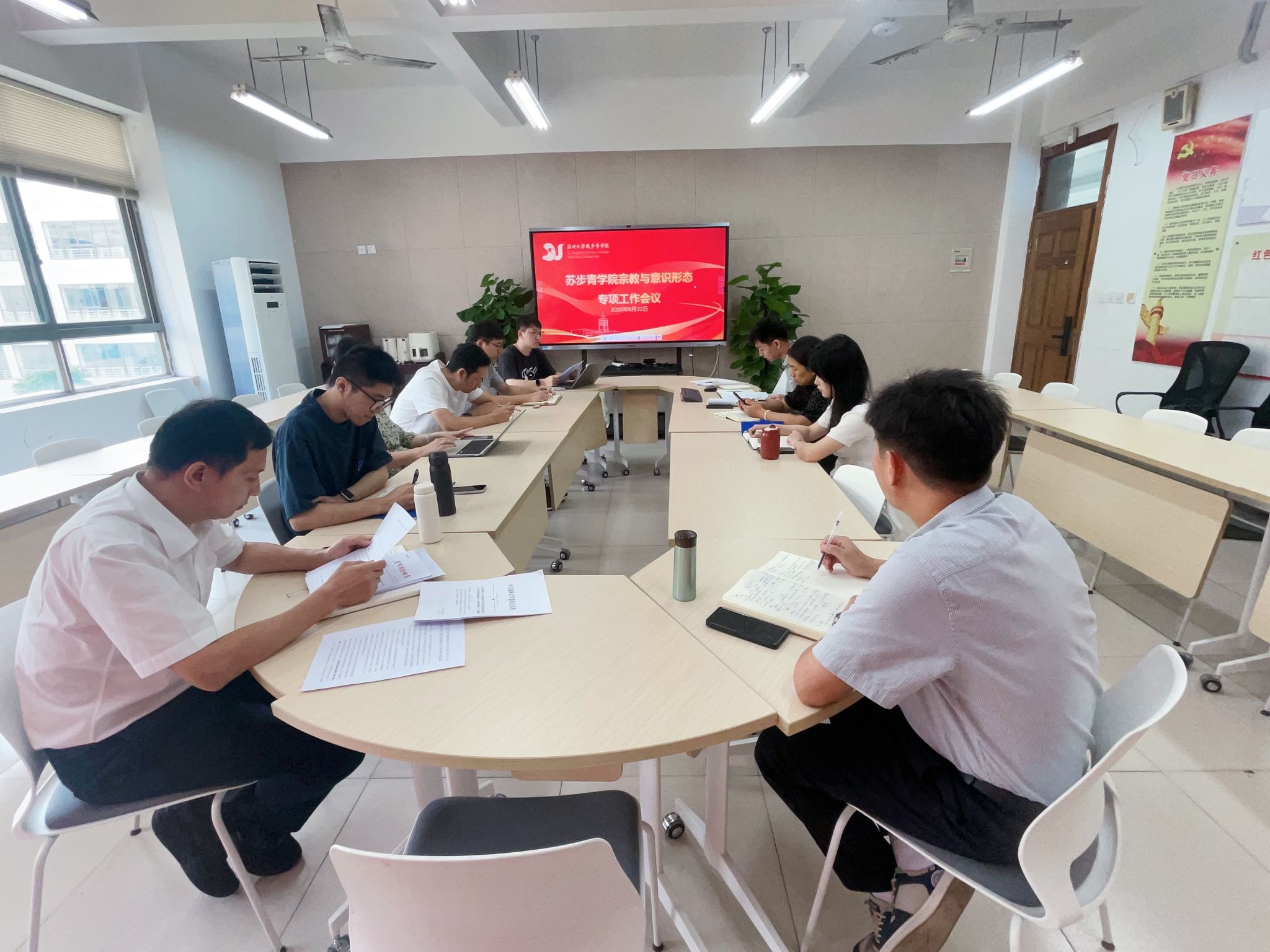 会议就学院2025年秋季学期师德师风动态分析研判、师生思想动态分析研判进行通报,并就意识形态风险隐患进行研判。