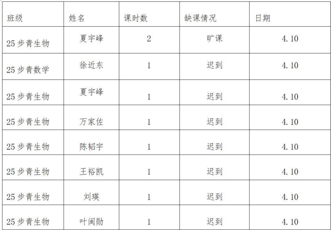 以下为第五至六周早晚自习和课堂考情情况,希望被通报的学生能够认真反省,主动改正错误,自觉遵守纪律。
