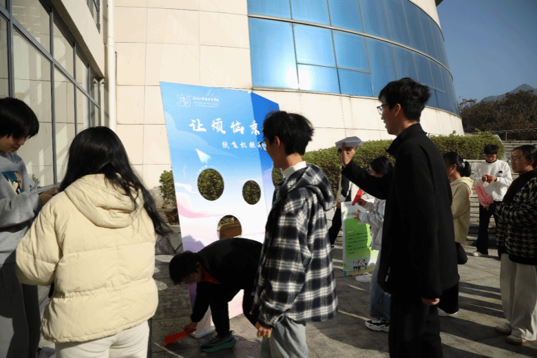 游园会现场,各个项目摊位前都围满了热情参与的同学。在“烦恼纸飞机”摊位,同学们拿起纸笔,将学业的困惑、人际的小烦恼一一书写于纸上,再折成纸飞机奋力投出;在“心趣飞行棋”毯子前,同学们滚动骰子,一边回答趣味心理问题,一边完成互动小任务,提升了情绪管理与沟通表达的能力;“心花签语”区域的志愿者准备了干花、绿叶与透明书签,同学们亲手将干花绿叶装饰在书签上,再提笔写下对未来的期许与憧憬,将美好心愿定格在精致的书签之中;“同心绘梦”环节里,小组成员们默契配合,共同执笔完成一幅绘画作品,让团队协作的意识在笔尖悄然扎根;而“平衡时光”项目中,同学们手持铁圈操控杆,专注地让铁圈平稳滚动,学会在浮躁中找寻内心的平静。
